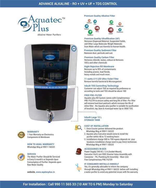 - Technology: Alkaline RO+UV+UF+TDS
